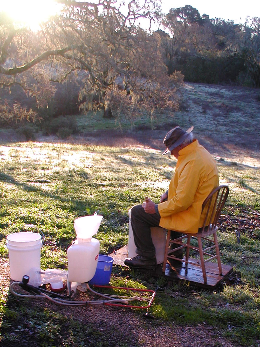 The stirring equipment needed depends on how much you will be spraying. For an acre or less, a 10-12 gallon crock or small wooden barrel or wooden bucket works well. Get one that has never had chemicals in it. We use a wooden dowel or stick to stir and allow the water to sit in the sun for a few hours before stirring in the preparation. You can also use pond water.